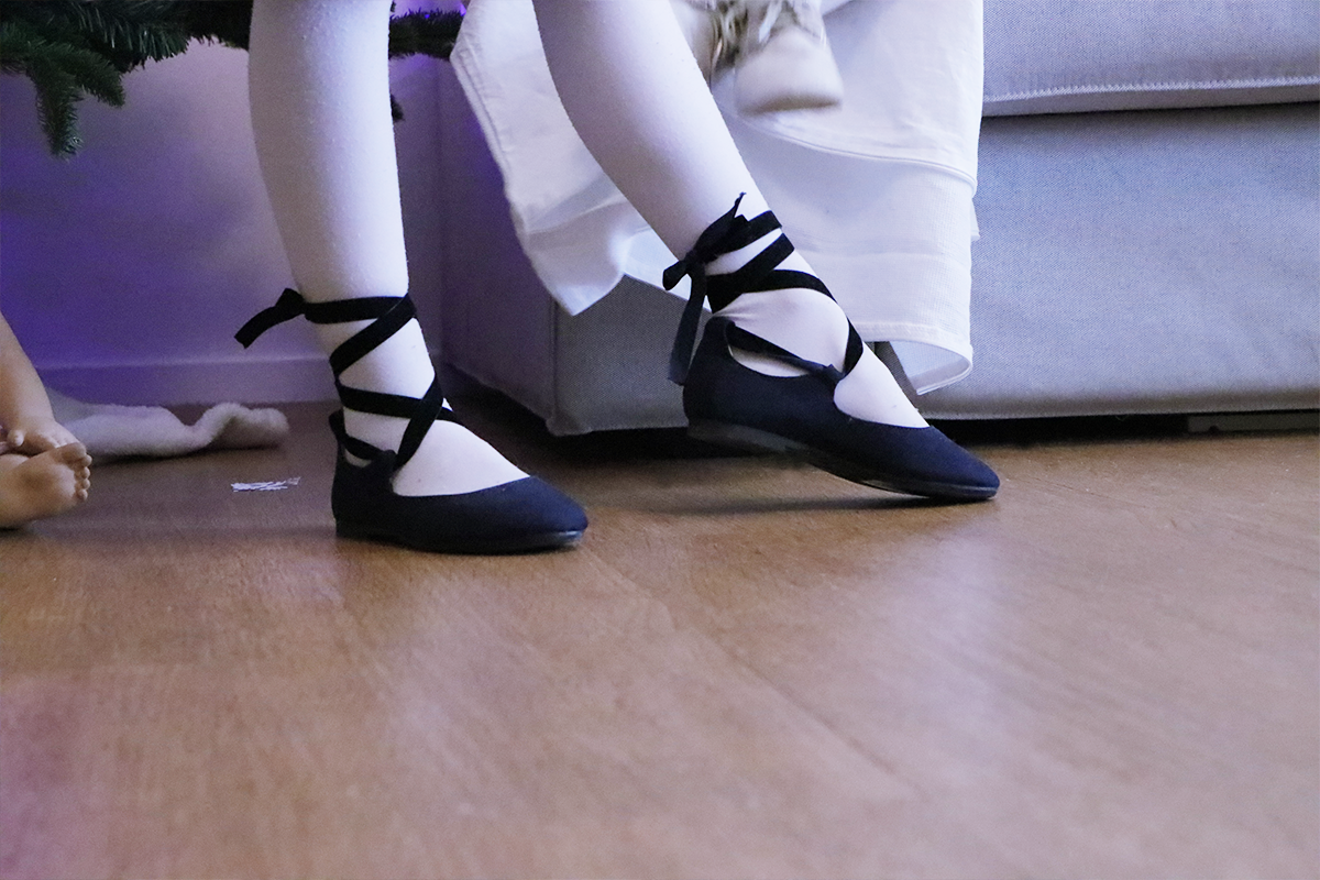 Elle a également choisi des ballerines à nouer qui lui rappelle beaucoup les ballerines des danseuses classiques qu’Emma a en admiration. Il était évident que ces jolies ballerines lui plairaient beaucoup.