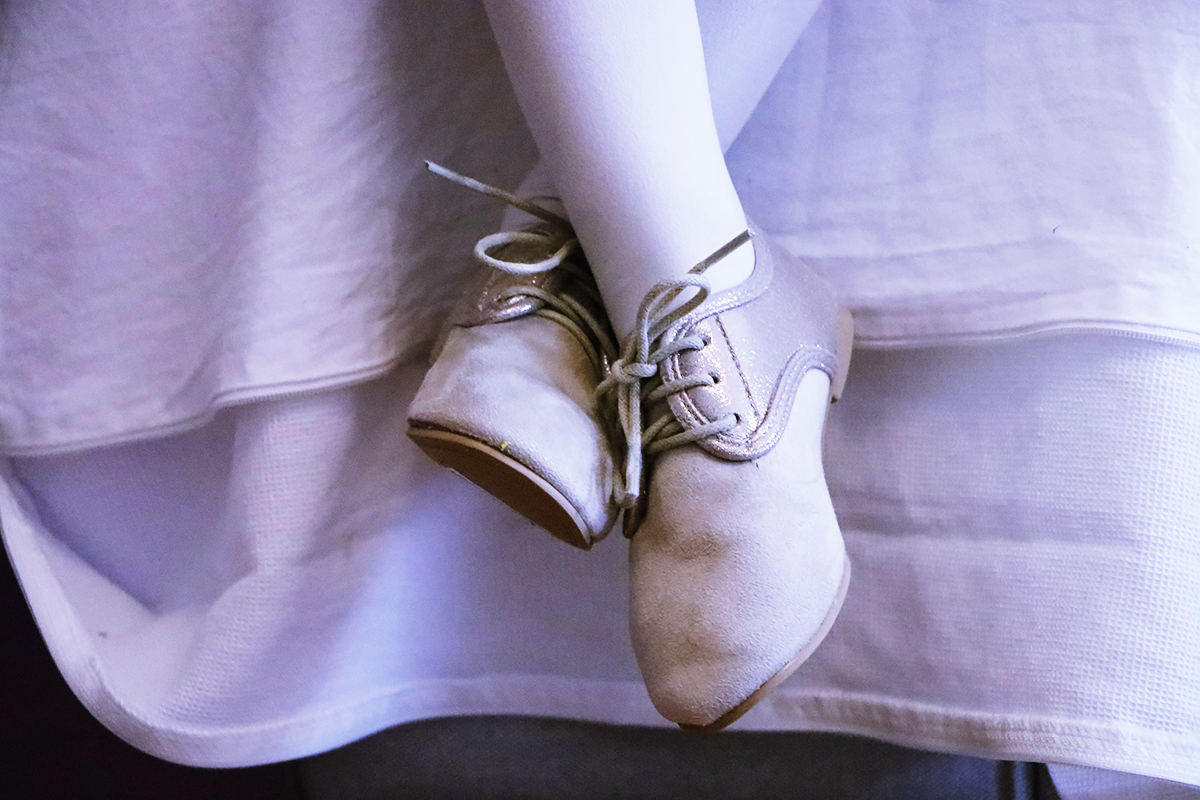 Assortie à de jolies petites derby dorées et pailletées, l’ensemble est du plus bel effet.