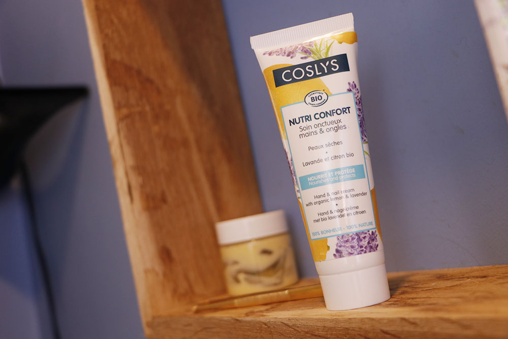Mais ça c’était avant (comme dirait l’autre !). J’utilise, en ce moment, la crème Nutri Confort de Coslys dénichée chez Brindilles. Elle fait les mains toutes douces, n’est pas grasse du tout, est très vite absorbée par la peau. Formulée pour les peaux sèches, elle intègre de la lavande et du citron bio en plus du beurre de karité et de l’aloé vera.