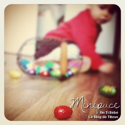 Malgré tout, c’est avec application que notre chasseuse d’oeufs en herbe s’est appliquée à remplir son panier ! C’est ensuite avec gourmandise qu’elle a goûté au doux chocolat ! (ne pas en abuser… car pas très bon pour elle du haut de ses 13 mois). En attendant de vous lire et de vous annoncer demain les résultats du jeu organisé ici et ailleurs depuis quelques jours, je vous propose de découvrir quelques photos de la chasse aux oeufs de Minipuce ! SA PREMIERE CHASSE AUX OEUFS !