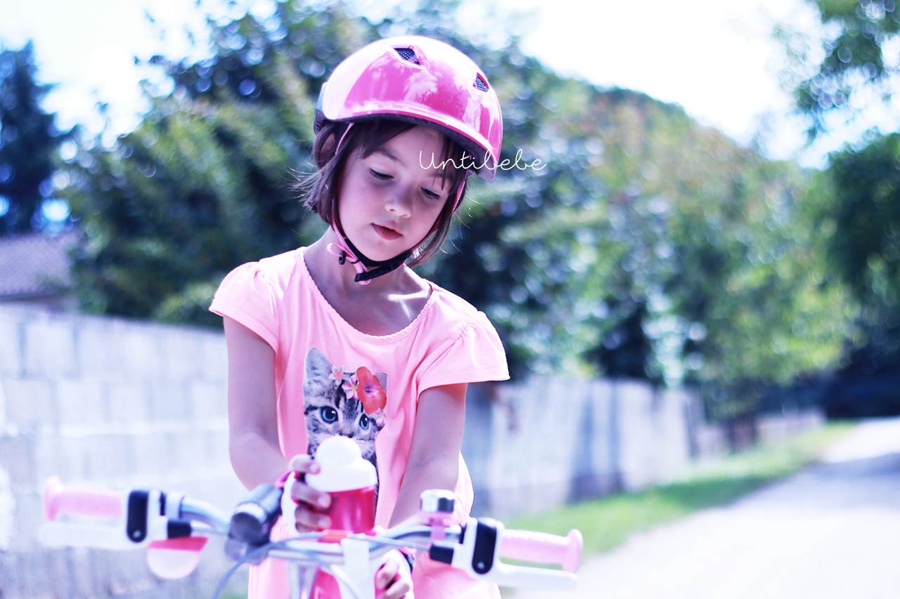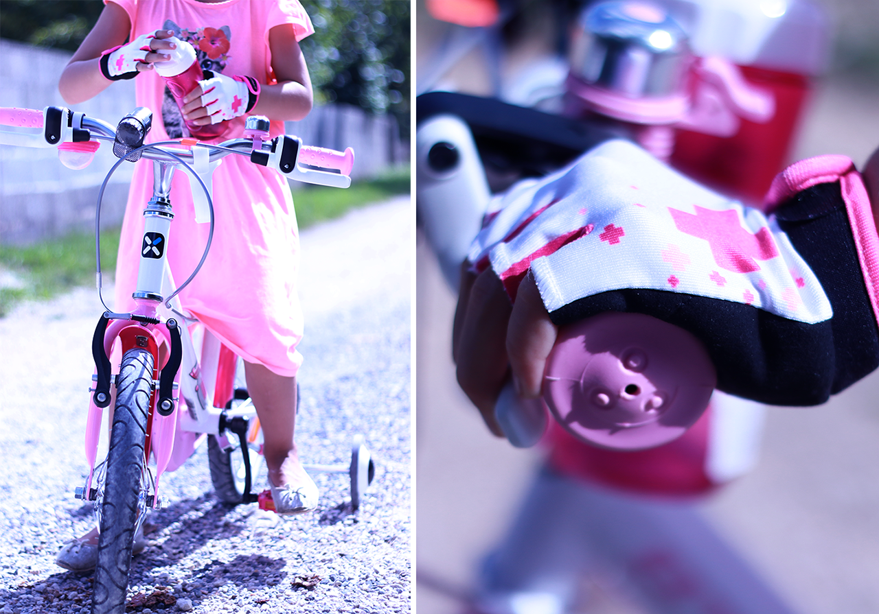 Vous vous souvenez peut-être de cette vidéo que j’avais réalisée l’année dernière. On y voyait Emma faire ses premiers tours de roues (et jouer l’actrice… Si si !) avec petites roulettes à l’appuie. Depuis, elle a fait de beaux progrès puisque les petites roulettes ont été abandonnées.