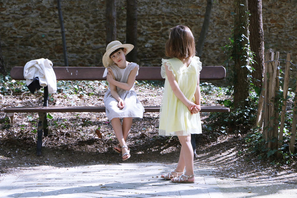 Cette année, nous avons la joie d’être invités à un mariage… Et cela arrive suffisamment rarement dans notre vie de famille pour que cet événement soit souligné ! C’est bien simple, le dernier mariage auquel nous avons assisté c’était le nôtre en 2015 ! La date est réservée, notre calendrier est déjà coché… Nous sommes (presque) prêts !… Enfin, je ne sais pas encore comment je serai habillée ce jour-là. Par contre, Emma et Léna ont déjà une idée de leur tenue pour ce jour-là. Pour tout dire, elles ont même le choix entre deux jolies tenues de cérémonie chacune ! Voilà qui est parfait : elles auront leur tenue pour le jour J et pour le lendemain de la fête, en famille.
