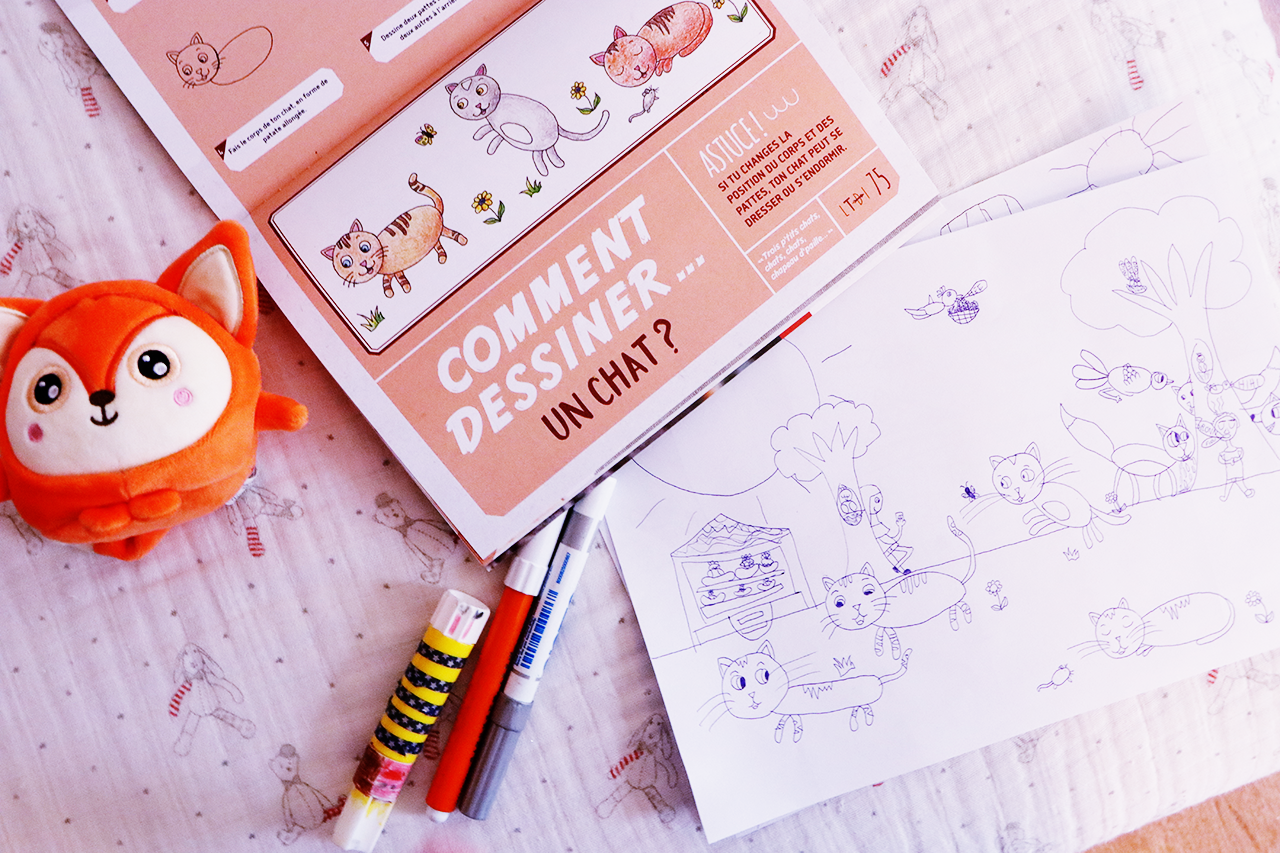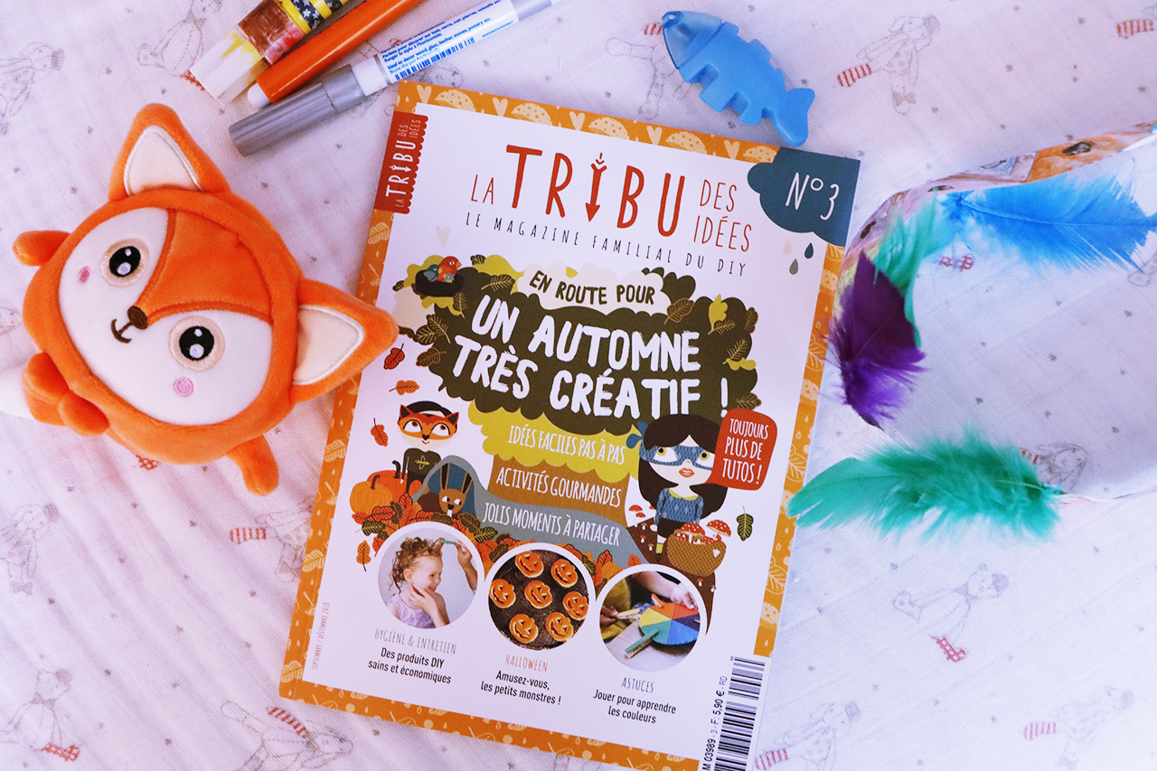Je trouve les idées proposées à la fois simples et recherchées, prouvant que l’on peut réaliser de très jolies choses sans forcément être un artiste ! C’est accessible et instructif ! Et oui, parce qu’on y apprend plein de trucs sympas ! Dans le dernier numéro (n°3), j’ai adoré parcourir l’article consacré au choix de la machine à coudre pour un enfant ! J’ai vraiment apprécié les recettes pour réaliser un dégraissant multi-usage, un nettoyant pour le sol, du liniment ou encore une lessive « douceur ». Mais il y a encore bien d’autres pages qui ont excité mon petit cerveau… J’ai fini par avoir envie de tout faire (me manque juste le temps dans l’histoire) y compris les réalisations proposées dans le « cahier spécial enfant »! Un attrape-rêve, une clé USB customisée, des petites boîtes surprises… et j’en passe ! Emma, quant à elle, a flashé sur le tuto pour apprendre à dessiner un chat et sur la réalisation d’un bouquet de citrouilles… Léna, elle, veut absolument réaliser la bouteille sensorielle ! Bref, on a de quoi faire !