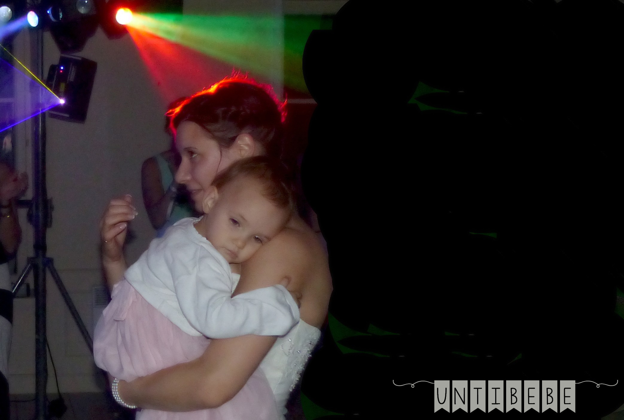 Alors tu attends, tu luttes désespérément contre le sommeil, les yeux écarquillés… tu n’en loupes pas une miette… Enfin, si, peut-être. En fait tu comates de bras en bras, hurlant de désespoir sur l’adulte-matelas qui aura osé te déloger de ton squat presque douillet…. Tu squattes les bras de maman (la mariée donc), qui ne pense bien évidemment qu’à te refiler à qui le veut bien. Avec papa (le marié, si vous suivez bien), ils se relaient pour pouvoir profiter de la piste de danse de préférence à deux (c’est quand même les mariés)… Alors, tu squattes les bras de papa qui, très vite, vient te déposer dans les bras de mamy qui te refile à papy,… et, sans savoir comment tu te retrouves dans les bras de ton autre papy et même dans ceux de ton autre mamy… Voilà, tu passes ta soirée à passer de bras en bras, les yeux toujours grands ouverts, visiblement ailleurs, pas vraiment bien.