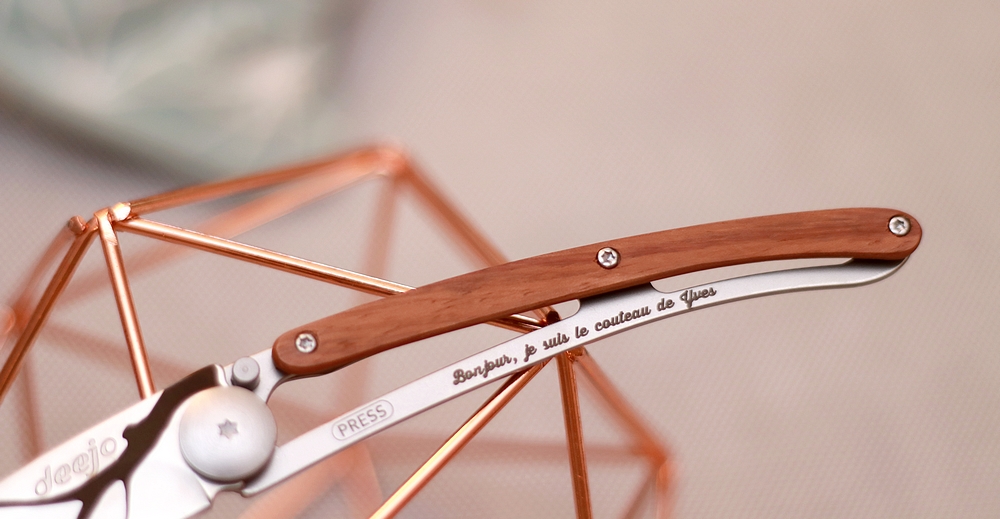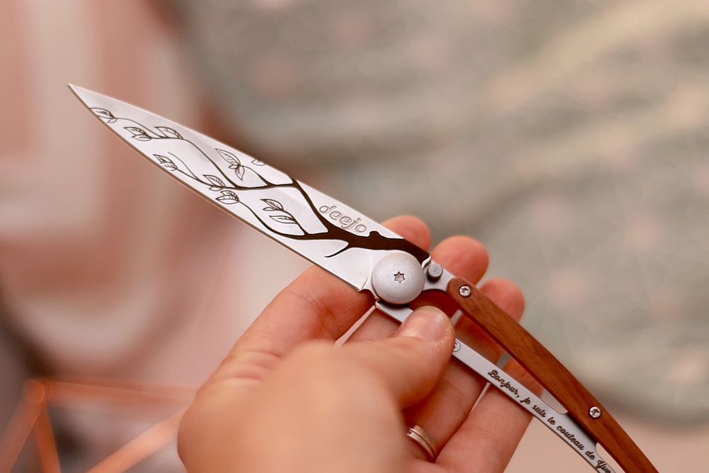 D’abord, leur forme est stylée et ergonomique. Et, en plus d’être utiles, les couteaux Deejo sont jolis (moi je trouve en tout cas !) et personnalisables.