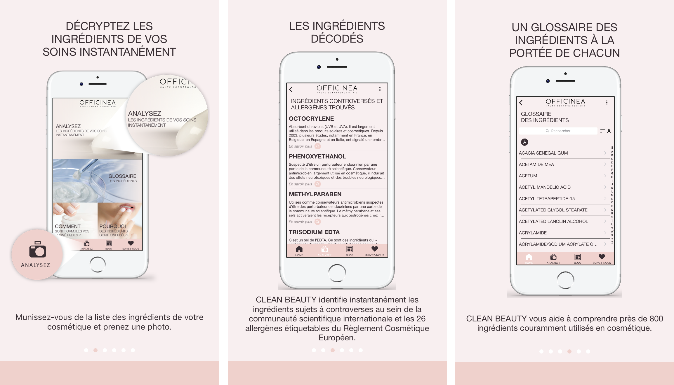 Mais, au delà de cette démarche, tout à fait légitime pour une entreprise en quête de progression, Officinea a créé une application gratuite, dénommée Clean Beauty, à télécharger sur un smartphone, a un intérêt tout particulier.