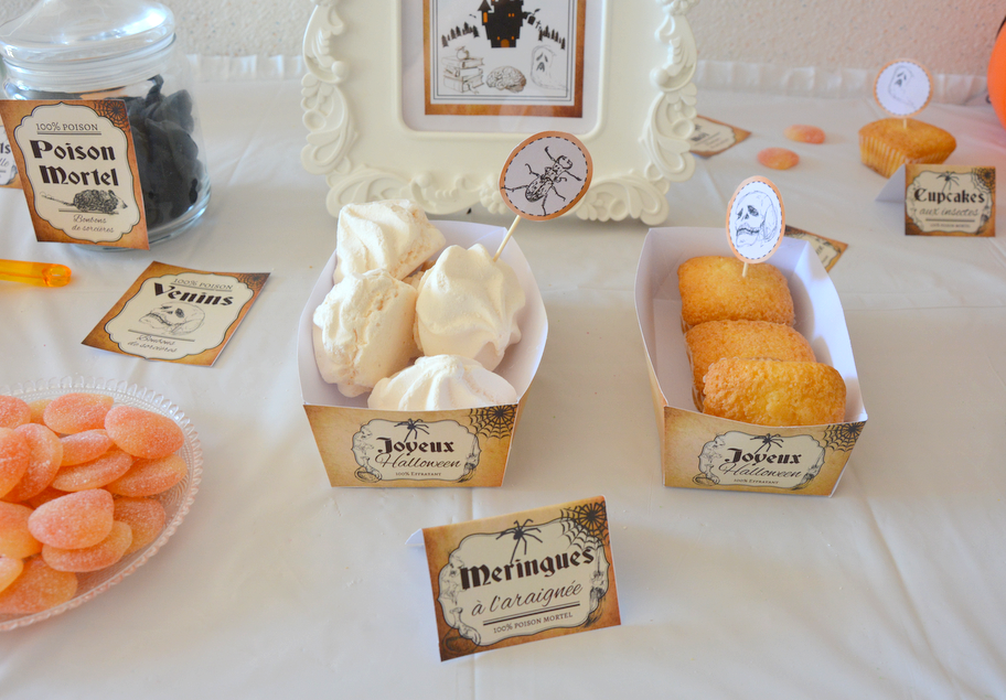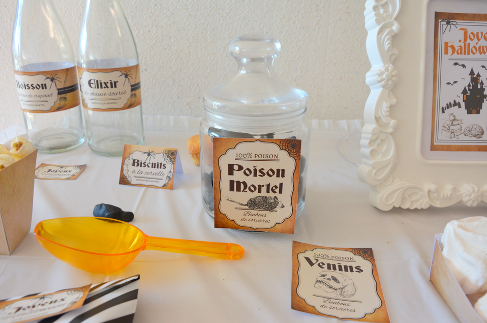 J’ai peu de temps pour trouver des idées et peu de temps pour les réaliser alors, pour une fois, je me suis laissée guider par internet et toutes ces choses toutes faites dont il regorge. C’est ainsi que j’ai été amenée à tester un kit décoration de sweet table pour Halloween facile à réaliser de chez MyBBshowerShop. Dans ce kit complet, on trouve plein de choses :
