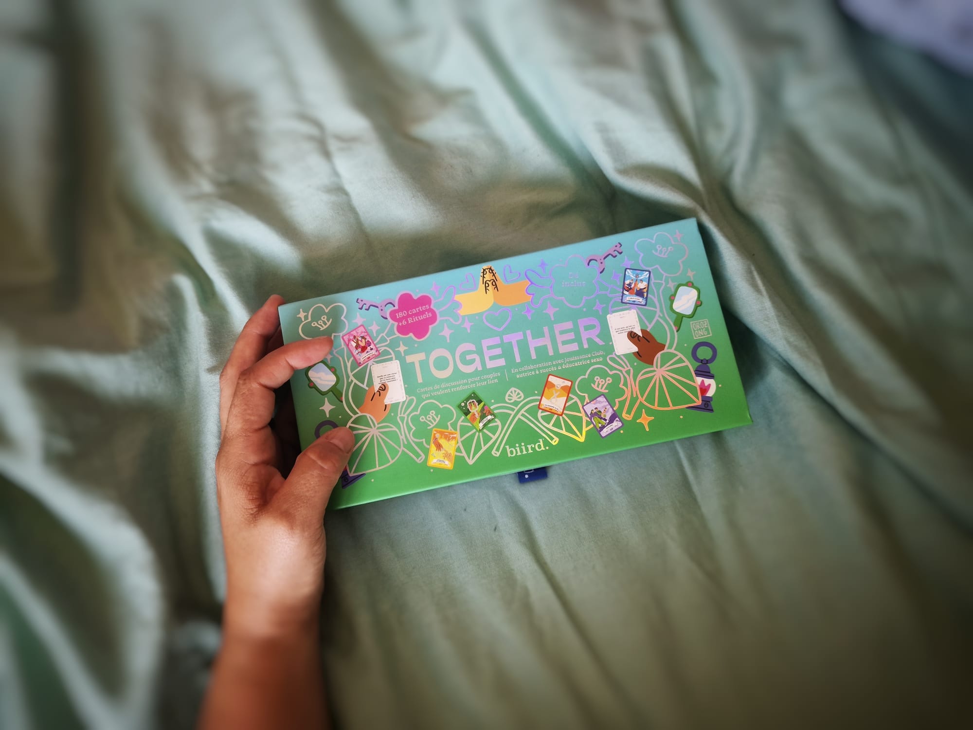Together, ce n’est pas un simple jeu de société que l’on sort pour passer le temps. C’est 180 cartes de discussion, pensées avec une approche psychologique, qui ouvrent la porte à des conversations tantôt légères, tantôt profondes… et parfois franchement coquines… Un vrai jeu pour couple.